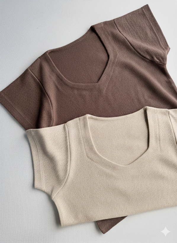تیشرت بیسکویتی آستین کوتاه یقه هفت