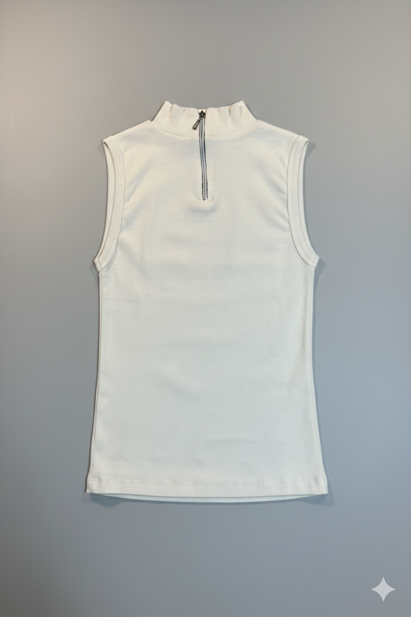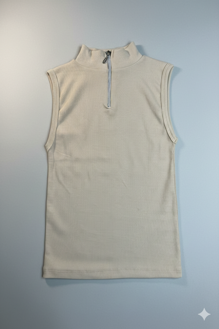 تاپ کبریتی زنانه یقه ایستاده، انتخابی ساده و کاربردی برای استایلهای روزمره و مینیمال. طراحی بدون آستین همراه با یقه زیپدار، ظاهری مدرن و مرتب به لباس میدهد و بهراحتی با انواع شلوار، دامن یا لایههای رویی ست میشود.