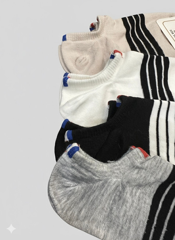 اگر به دنبال جورابی هستید که داخل کفش کاملاً راحت باشد و در عین حال کیفیت بافت بالایی داشته باشد، این سری ۴ رنگی بهترین انتخاب برای شماست. این جورابها با طراحی زیرمچی (کالجی) طراحی شدهاند تا با انواع کفشهای کتانی و اسپرت، بدون بیرون زدن لبهها، ست شوند.