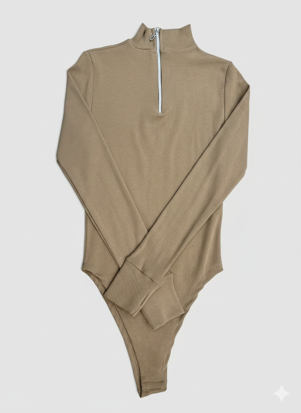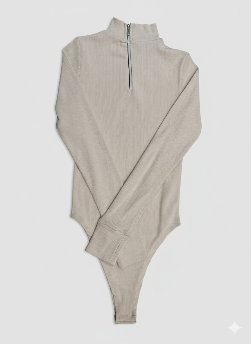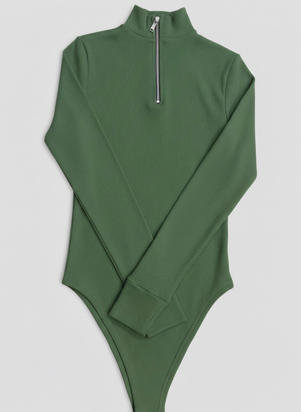 بادی آستین بلند فینگردار کبریتی یقه سه سانت نیم زیپ